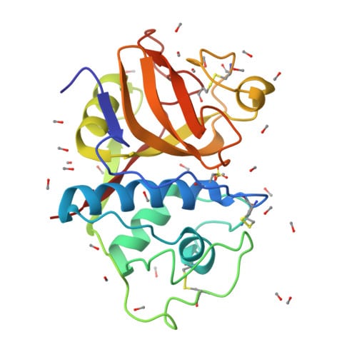 Abbildung 1: Darstellung von Papain. Die räumliche Struktur von Papain wurde aufgeklärt und kann anhand des a-Helix und b-Faltblatt Modells optisch dargestellt werden. Die Struktur von Papain kann für grundlagenwissenschaftliche Arbeiten aus der Protein Datenbank entnommen und weiterverarbeitet werden.