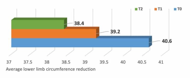 Nach sechs Monaten zeigte sich eine deutliche klinische Verbesserung bei den Patienten. Das Pitting verschwand bei 72 % der Teilnehmer vollständig, während bei den übrigen Fällen eine klare Abschwächung beobachtet wurde. Die mittleren Umfänge der betroffenen Gliedmaßen reduzierten sich im Durchschnitt um 4,2 cm, was einer Verringerung von etwa 6 % entspricht. Besonders bemerkenswert war, dass sich diese Reduktion sowohl an oberen als auch an unteren Extremitäten zeigte, was auf eine gleichmäßige Wirksamkeit der Therapie hinweist. Die Ultraschallmessungen zeigten eine mittlere Reduktion der subkutanen Gewebedicke um 29 %, wobei 27 % der Patienten eine Reduktion von mehr als 10 % aufwiesen.